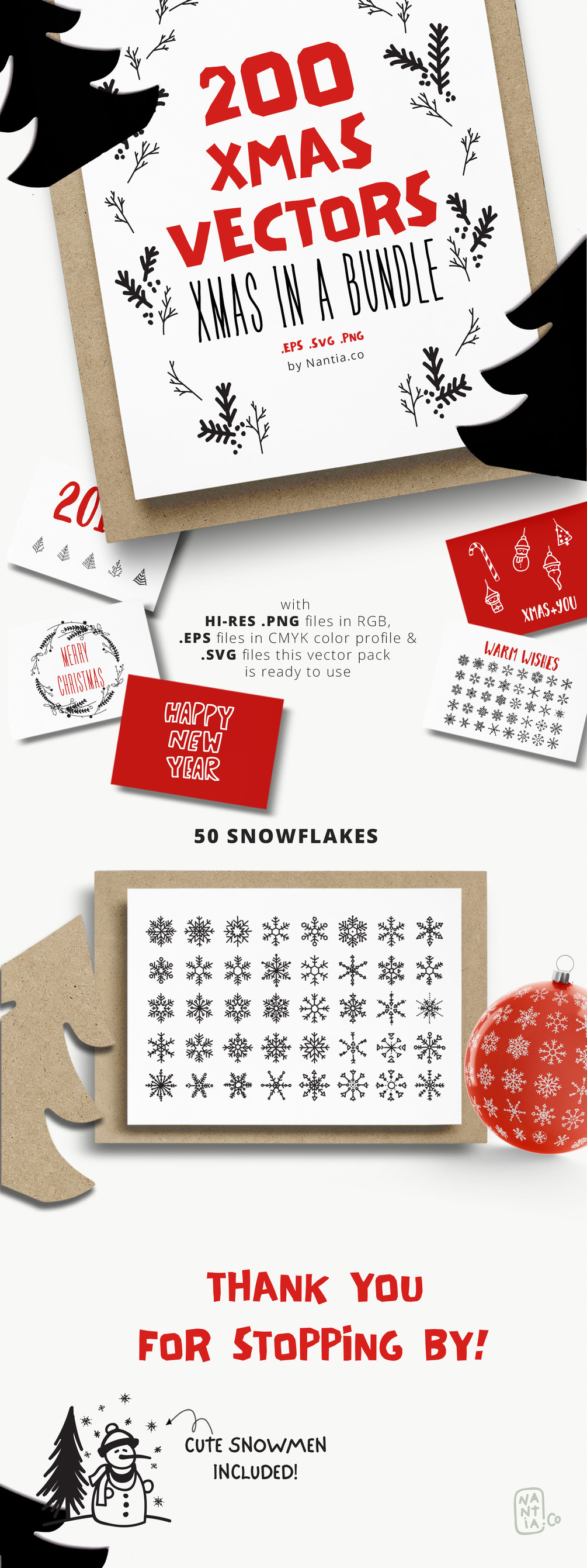 The Boho-Chic Xmas Edition: The Bundle Pack includes 100 vector elements