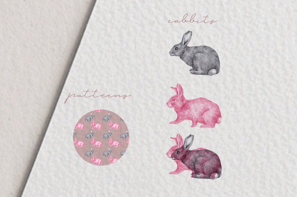 The Hand drawn Rabbits Illustrations Pack includes: