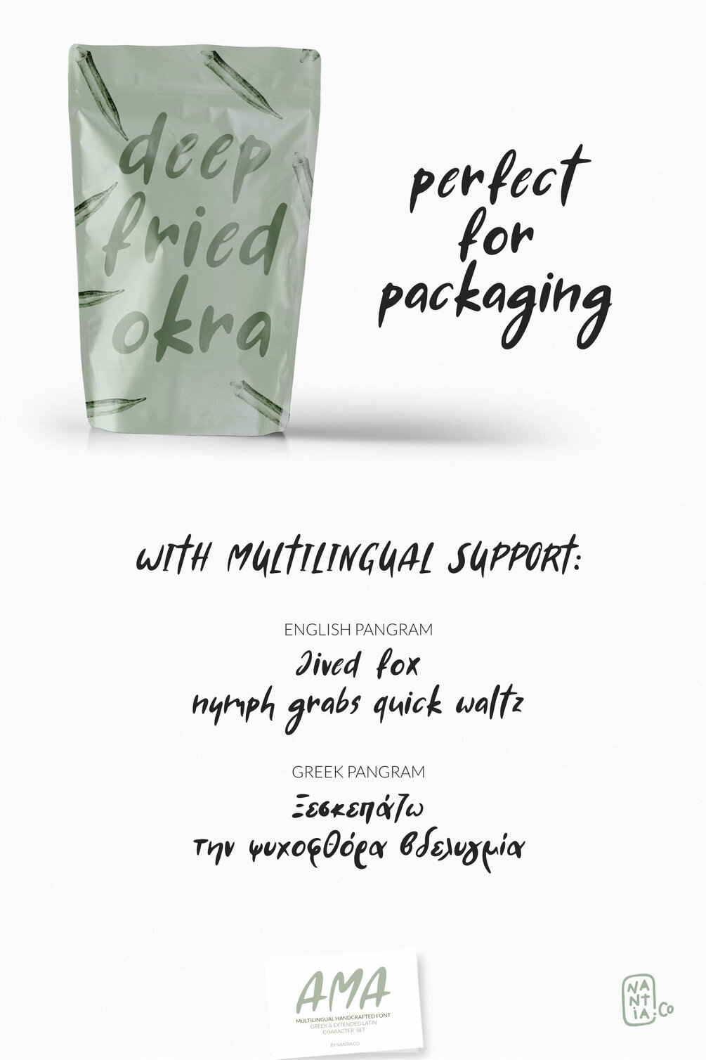 This font is a hand-made typeface with Greek Character support. Τhis typeface can be a mighty companion to your next graphic design project. From "hand-written" quotes to product packaging, merchandise, and branding projects, this font is so versatile that it can cover them all.