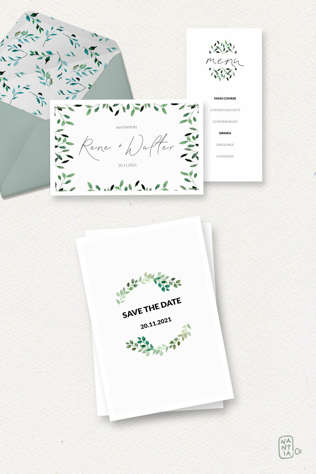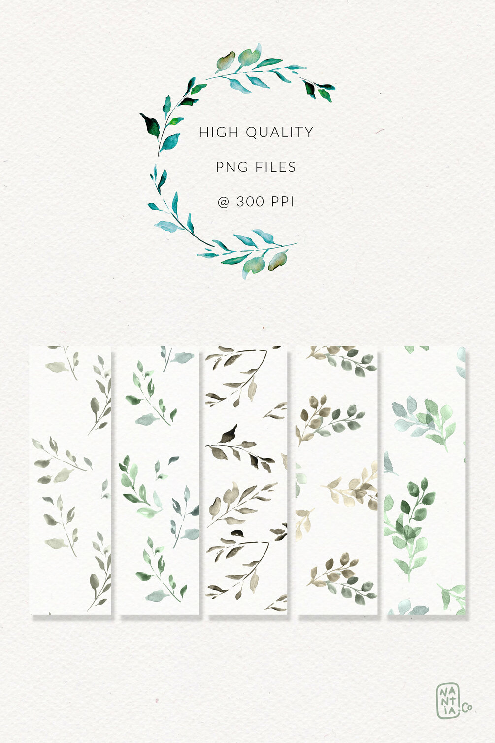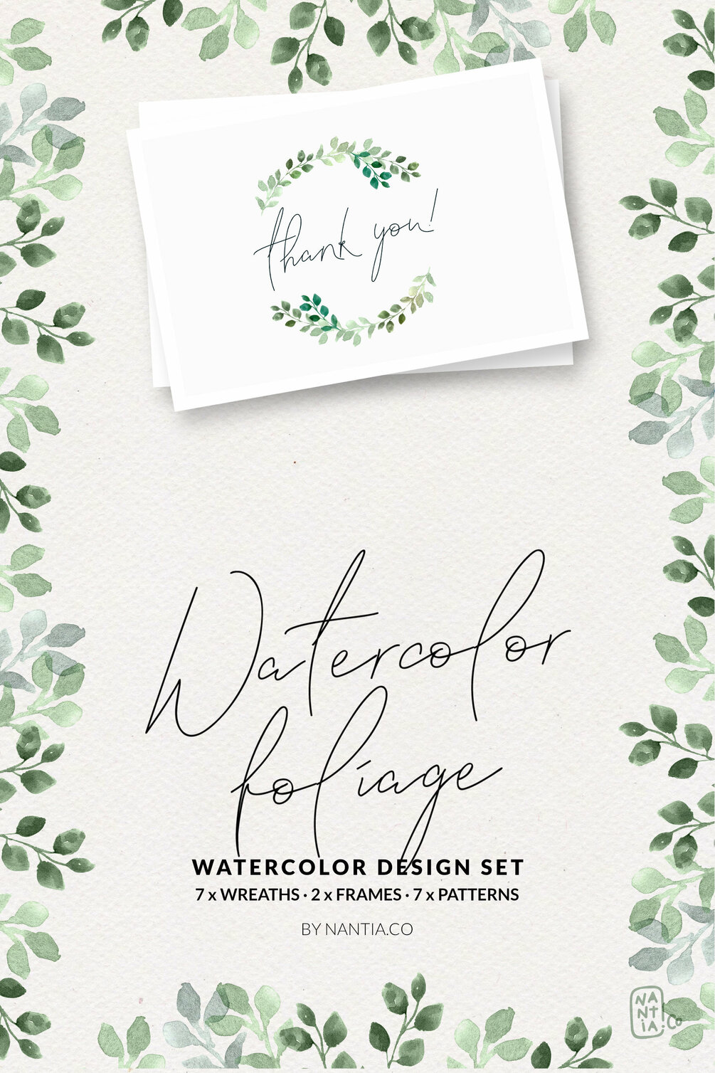 The Watercolor Foliage Design Set includes: