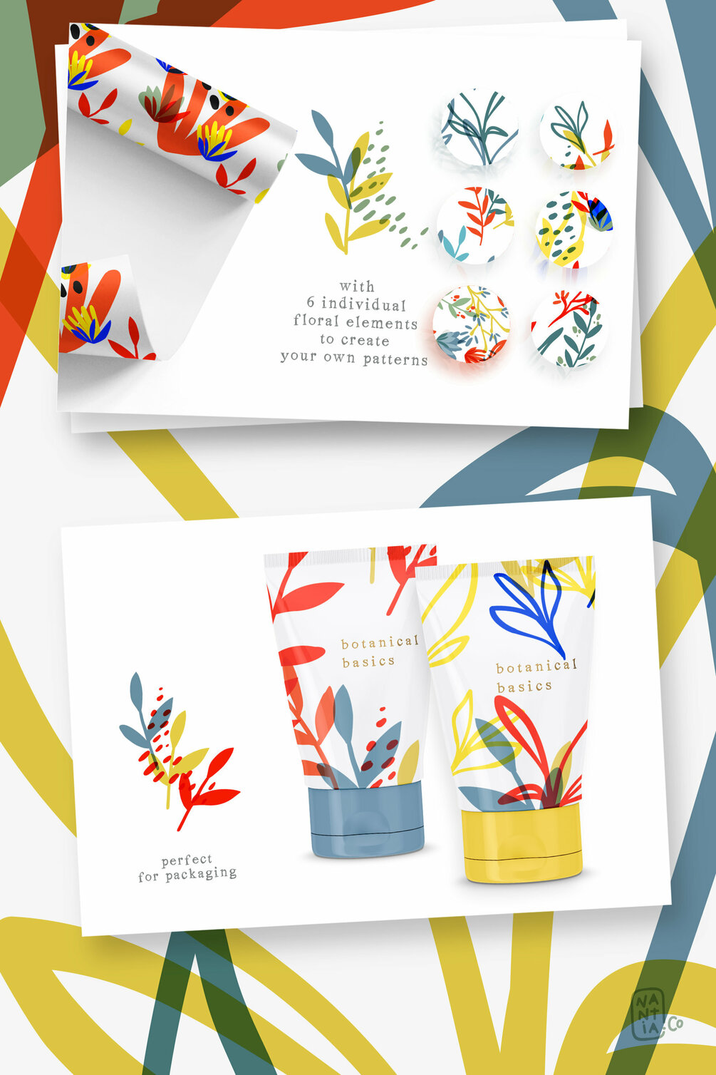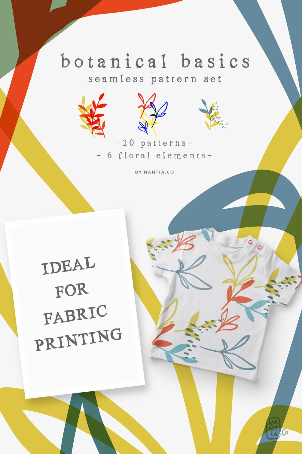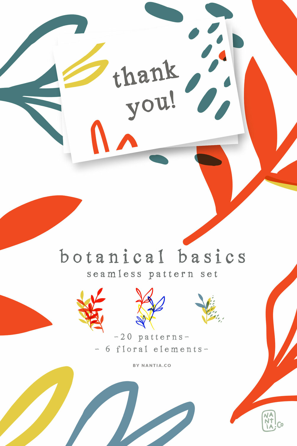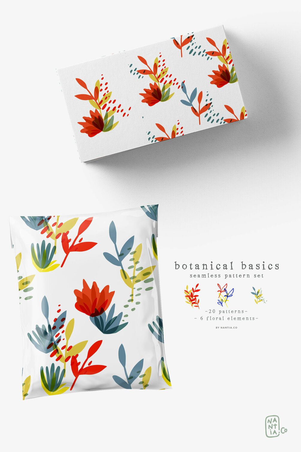 The Botanical Basics Pattern Set includes 40 floral seamless pattern designs with botanical elements in basics colors and 6 separate botanical arrangements. This Pattern Set can be used in blog backgrounds, social media template backgrounds, wedding invitation designs, packaging, and textile designs. With this floral-style patterns, you can make botanical graphics on the spot.