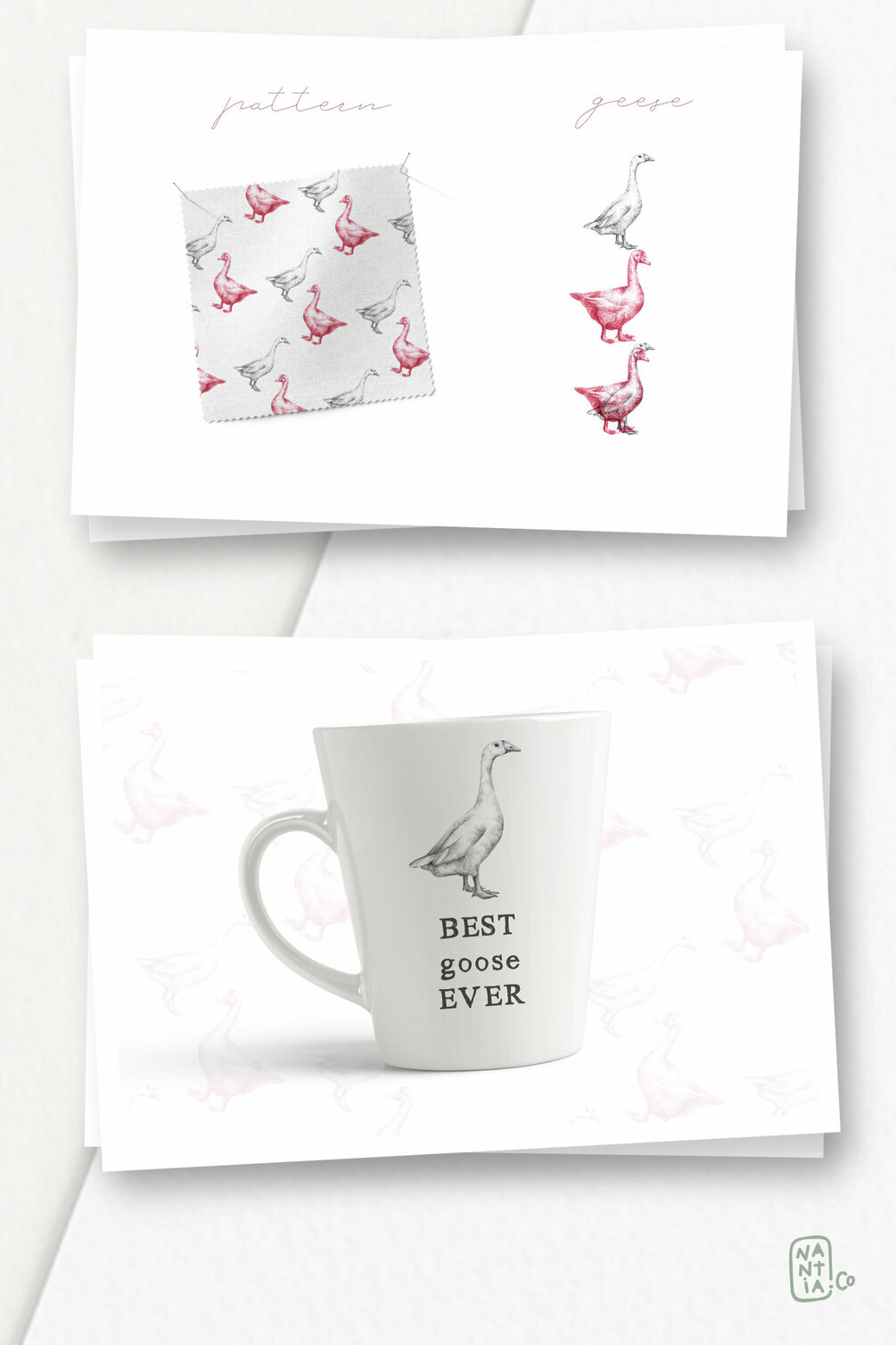 The Hand-drawn Geese Illustrations illustration pack includes two illustrations of geese made with graphite, a mashup of the two illustrations, and a seamless pattern ready to use. With a variety of file types such as JPG or PNG with transparent background, this illustration pack is ready to use. The pack includes two different illustrations, that you can combine into one double image. In fact, this pack is perfect for restaurant menus, art projects, packaging and so many more.